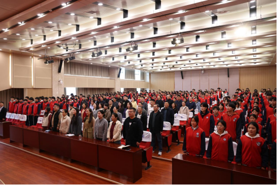 下午三时,雄壮的《义勇军进行曲》响彻会场,全体起立,高唱国歌。激昂的旋律激荡着每一位财校人的爱国情怀与奋斗初心,表彰大会在庄严的氛围中正式拉开帷幕。