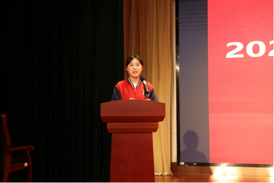 省级优秀学生干部代表诸葛憬萱同学,则以清朗之声讲述了她在学生会工作中的历练与收获。她代表全体学生骨干立下铿锵誓言:一要做信念如磐的追梦人;二要做技艺超群的实干家;三要做心态向阳的奋斗者;四要做懂得感恩的奉献者。她牢记“学生干部本质是服务者”的初心,呼吁全体同学在青春的赛道上携手并肩,勇攀高峰,以实干与担当共同绘制财校更加辉煌的明天。